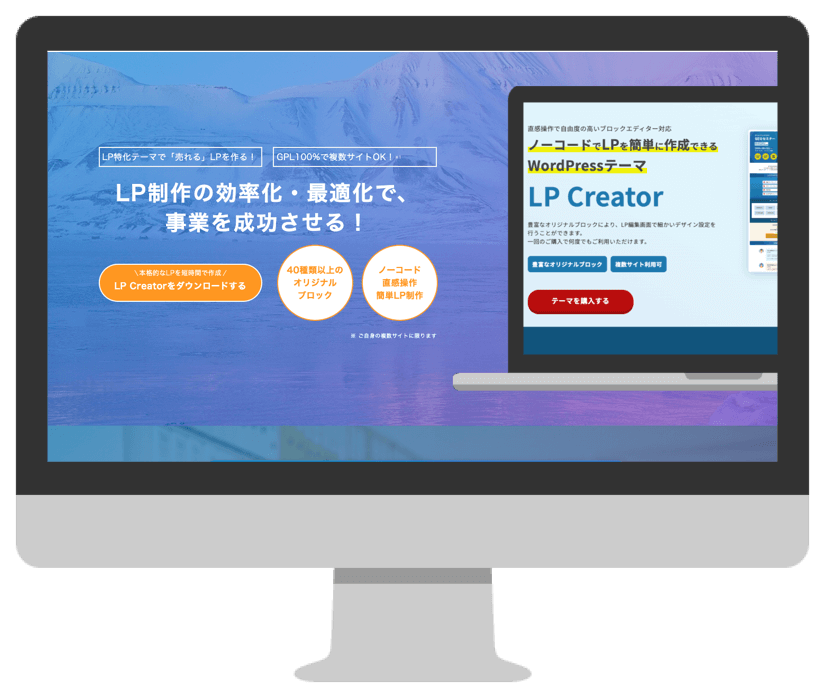 LPに特化したテーマですが、40種類以上のオリジナルブロックとページ機能があるため、LP以外にも色々なデザインのサイトが作成できます。