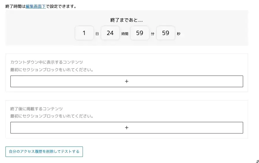 以下のようなカウントダウンタイマーブロックが表示されます。