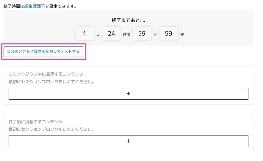 終了コンテンツを確認した後に、再度カウントダウン中のコンテンツを確認したい場合など、アクセス時間をリセットしたい時に押してアクセス履歴を削除して下さい。