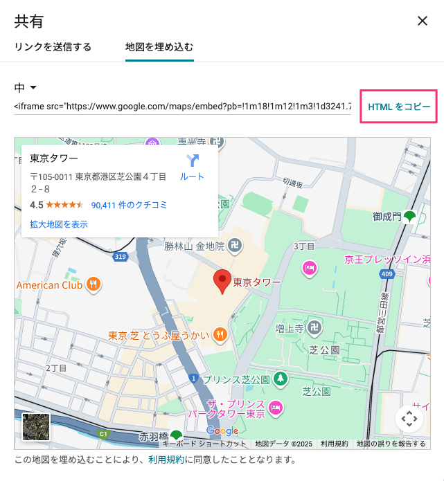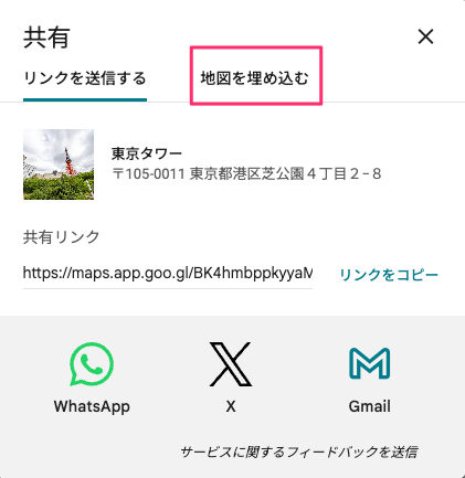 ブロックエディター上で /googlemap と打っても追加できます。(ショートカット)