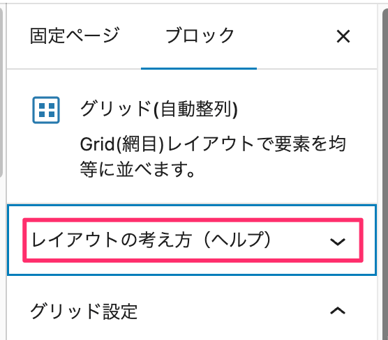 このブロックは、指定した「列数」や「最小の列幅」でコンテンツを並べるブロックです。
