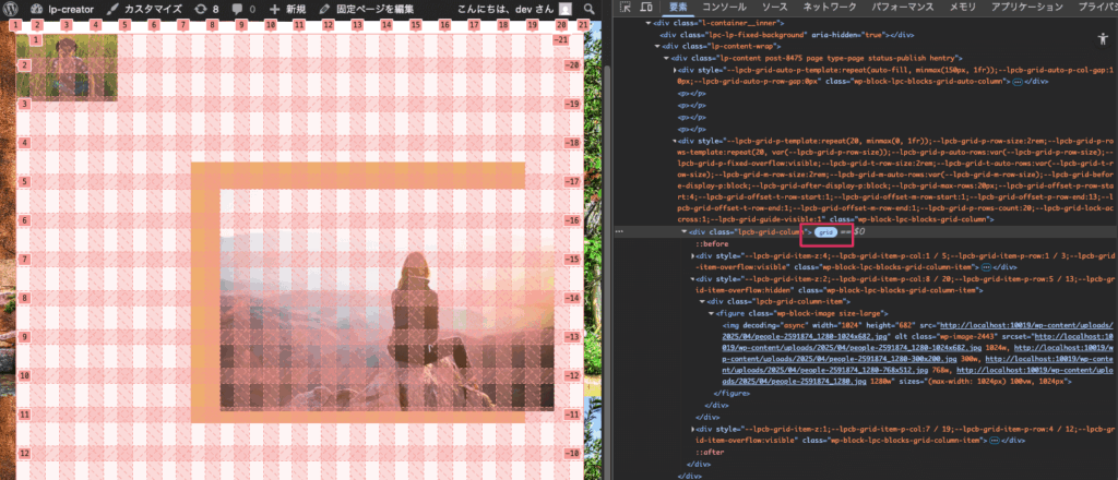 [LPC] レイアウトにあるグリッドのアイコンをクリックして追加します。