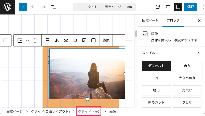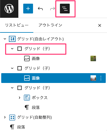 ブロックエディターの画面下にブロックの内側が出ていますので、それをクリックするとワンクリックで選択ができます。