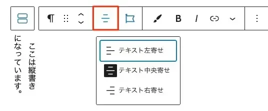 縦方向(上/中央/下)は書式ツールバーの「テキストの配置」で変更してください。