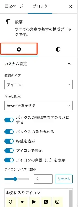 浮かせ効果やアイコンサイズ、背景色やアイコンの色味、枠線の非表示、角丸の設定ができます。