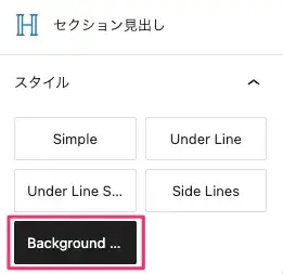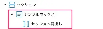 右サイドバーにセクション見出しブロックの設定が表示されない場合は、赤枠の箇所をクリックすると右サイドバーにブロックの設定が表示されます。