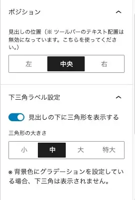 下三角ラベルの表示位置は「ポジション」と連動しています。