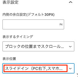 ブロックによってはオプションがPC表示の設定値を引き継がない、スマホ向けのデフォルト設定値が効くブロックがありますので、必ずPCとスマホでフロントページをご確認下さい。