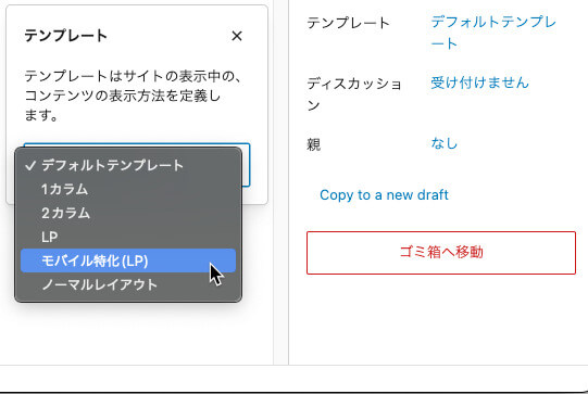 テンプレートから「モバイル特化(LP)」を選んでください。